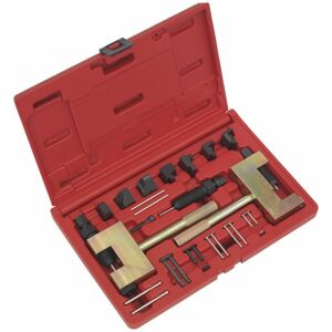 Sealey: Diesel & Petrol Master Timing Tool Kit 53 Piece VAG - Belt/Chain Drive Master timing tool kit for VAG vehicles. Covers a wide range of petrol and diesel engines. Suitable for popular VAG vehicles from 1995 to present. Supplied in two high quality storage foams suitable for toolbox drawers. Foam size 560mm x 390mm x 45mm. MPN: VS5100MK EAN: 5054511816884 Diesel & Petrol Master Timing Tool Kit 53 Piece VAG - Belt/Chain Drive Attributes: MFR Part No.: VS5100MK Nett Weight: 13kg