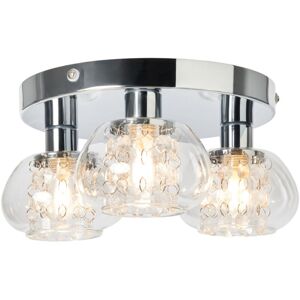 The Lillian 3 Light Bathroom Flush Ceiling Light combines decorative elegance with everyday functionality. With a chrome base, clear glass shades, and crystal-effect droplets, it offers bright, ambient lighting while remaining compact and moisture-safe. This IP44 rated light offers a stylish, moisture-resistant lighting upgrade. Product Type: Flush Ceiling Light Bulbs Required: 3 (Not Included) Bulb Type: G9 Max Bulb Wattage: 3 Watt Max Bulb Voltage: 240 Volt Light Source: LED Height: 12 cm approx. Diameter: 28 cm approx. Ceiling Cap Diameter: 22 cm approx. Drop: 12 cm approx. Shade Height: 7 cm approx. Shade Diameter: 11 cm approx. Material: Metal, Glass, Acrylic Colour: Polished Chrome, Clear Technical Information IP44 Rated for safe use in bathrooms (Class I Protection) Weight: 1.18 kg