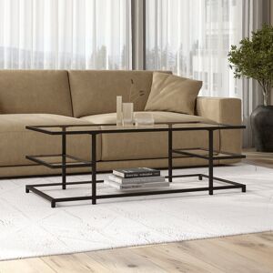 A bold linear profile sets this modern contemporary coffee table apart. Its inset frame echoes the cantilevered design of mid-century architecture, while the durable tempered glass shelves create an artful backdrop for framed photos, flowers, or your favorite collections of decorative items. The eye-catching look can blend in or stand out in your living room, family room, or den. Canora Grey Colour: Clear/Blackened Bronze