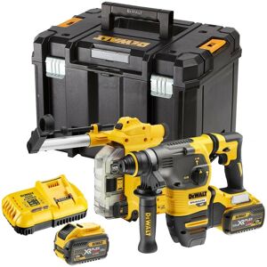 This set includes the Flexvolt DCH333 SDS with D25304DH dust extractor, 2 x 9.0ah Batteries, Charger and Deep Tstak Case DCH333 Features: Category-leading high speed drilling performance at more than 66 holes (18mm x 80mm) per charge Rotation stop mode for light chiselling in plaster, tiles and render and impact stop mode for rotary only drilling in wood and metal Perform & Protect: best-in-class vibration at 8.5m/s , minimising user fatigue Bright white LED with delay feature improves visibility Ideal for drilling anchors and fixing holes into concrete, brick and masonry from 4mm to 30mm Compact, lightweight and ergonomic design for improved comfort and support during extended operating periods D25304DH Features: Completely cordless solution ensures this system can be used anywhere. Prevents dust contamination in environments such as houses, offices and hospitals. Enables drilling close to dust sensitive equipment. Minimises job site clean-up. Protects the operators eyes when