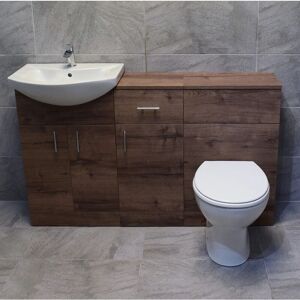 Mediterranean range 1350mm walnut finish bathroom furniture set: 550mm walnut oak finish vanity unit High quality 1 tap hole ceramic basin 500mm WC unit with concealed cistern Including standard back to wall toilet pan with seat 350mm wide storage unit with drawer & door Units can be placed together or as seperates, in any order you choose Unlike other listings our units come ready assembled (Not flat pack) With soft close doors Chrome finish designer handles Units manufactured in Europe Great for creating extra bathroom storage Sizes approx: Basin & unit: Width: 550mm Depth: 435mm Height: 865mm WC unit: Width: 500mm Depth: 300mm Height: 820mm (not inc. pan projection) Drawer line unit: Width: 350mm Depth: 300mm Height: 815mm Toilet pan: Width: 370mm Depth: 560mm Height: 405mm Total width of set: 1400mm With option to add Amy basin mixer tap & waste at extra cost Modern curved spout mono mixer tap manufactured from solid brass Chrome plated Single lever design Latest ceramic disk