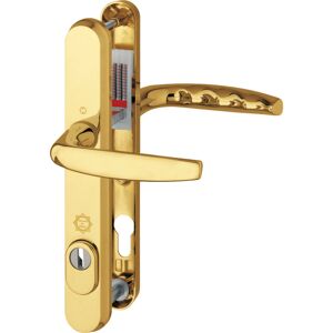 This German-engineered interior door lever lock set, with its sleek flat lever design and solid core construction, elevates any modern home. The universal handle orientation allows for flexible installation on any door, while the oval rosettes add a touch of elegance. HOPPE Finish: Brass