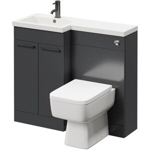 Model Number: WDB93244 The Napoli Combination Gloss Grey 1000mm Vanity Unit Toilet Suite with Left Hand L Shaped 1 Tap Hole Basin and 2 Drawers with Polished Chrome Handles combines a WC unit together with a basin vanity unit to create a seamless solid one-piece surface basin and worktop for a luxe finish. The luxe gloss grey finish is guaranteed to bring a very fine and sophisticated shine to your newly designed bathroom space. Our Napoli range is designed to perfectly fit with other items in the same range to complete your bathroom with a sleek finish. This combination unit provides an excellent amount of useful storage space that will keep your bathroom essentials out of sight and the cabinet drawers feature a soft-closing mechanism for a smooth, quiet closure to avoid unnecessary wear and tear. Key features High quality ceramic toilet Soft closing toilet seat Soft close drawers Basin comes with one pre-drilled tap hole Right hand version available Comprising of: Gloss Grey Floor