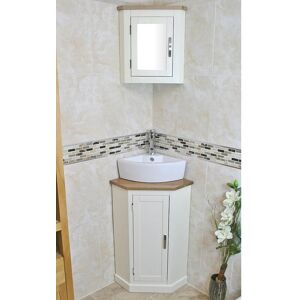 This is a stunning handcrafted solid oak bathroom freestanding corner vanity unit with a single cupboard with a height-adjustable central shelf. This unit comes complete with an undrilled worktop, a basin, a chromed mixer tap with braided connectors, and a chromed pop-up plug. Belfry Bathroom Base Finish: Grey