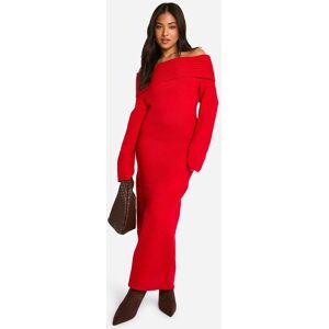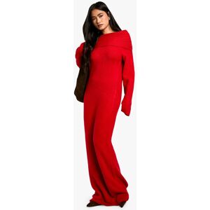 Boohoo Womens Premium Oversized Rib Bardot Neckline Soft Knit Jumper Dress - Red - Size Small