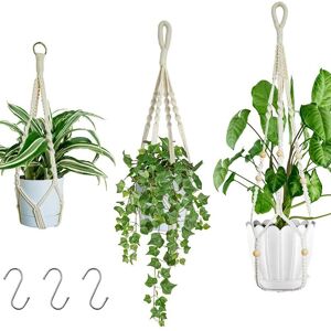[Sturdy Material] The hanging plant holders are made of high quality decor, and eco-friendly. are naturally beautiful and safe that you can use for a long time. [Simplify] 3 simple stlye rope plant hangers, no tassel at the bottom simple, exquisite and save space.It is suitable for different colors and patterns of flower pot, perfect to show your lovely plants. [Widely Used] The hanging plant holder can be used for indoor, outdoor, patio, office or botanical garden. plant holders would display all your lovely pots and plants and add elegance and beauty. [Warm Tips] The first, plants and pots not included. Second, it works well to keep your plants away from your pets. Third, you can feel the natural, just hang it outside for several days to let it out. Color: white Material: cotton rope Size: 90CM Package Contents: 3x Hanging Pots 3x Hook Only the above package content, other products are not included. Note: Light shooting and different displays may cause the color of the item in the