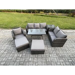 This wicker rattan lounge sofa Set can be used both indoors and Outdoor, with high quality PE rattan and durable galvanized steel construction for sturdiness and long lasting. Outdoor garden furniture can also be placed on the patio or balcony, The design of this rattan furniture is a perfect blend of country chic and modern minimalism, adding an elegant touch to your house. Set Dimensions: 2 x Side coffee table size65L x 65W x 66H cm 1 x Big footstool: 65L x 65W x 34H CM 3 x 2 Seater sofas size: 124L x 70W x 74H CM 1 x Dining table size: 110L x 70W x 70H cm Dark grey mixed rattan with dark grey fabric .Color may vary due to light or monitor .we are unable to return the item due to this problem .Please consult us before purchase if you have requirements on color saturation. the product is delivered on pallet, to kerbside only. Fimous 7 PCS Outdoor Lounge Sofa Set Wicker PE Rattan Garden Furniture Set with Rectangular Dining Table Love Seat Sofa in Dark Grey
