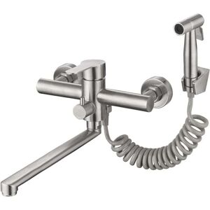 High-Quality Construction: Made of durable stainless steel with a stylish brushed nickel finish, this faucet is corrosion-resistant and designed for heavy-duty use. Versatile Design: With its 20 cm center wall mount and adaptable 1/2 NPT male inlets, this faucet is suitable for many commercial and residential applications. Convenient Side Shower: Featuring a stainless steel spray head with a reach of 2 m, this faucet is ideal for everyday use in laundry rooms and dishwashing areas. Multifunctional Compatibility: With its G1/2 interface, the side shower easily connects to dishwashers, washing machines, garden hoses, and other appliances to simplify your work. Easy Installation: Our user manual simplifies installation, and we offer a lifetime warranty for your peace of mind. For a complete kitchen installation, pair it with our professional stainless steel kitchen sink backsplash attachment kit.