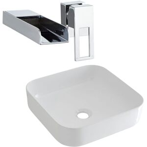 Accentuate the modern style of your bathroom with the contemporary Milano Rivington square countertop basin and high-rise waterfall mono basin mixer tap set. With smooth lines and rounded corners the basin is made from premium quality ceramic with an easy to clean white glaze. The angular tap boasts an open spout to deliver waterfall effect coverage for an elegant aesthetic and benefits from durable solid brass construction and an eye-catching chrome finish. A single lever handle allows for simple adjustment of the temperature and flow of water. - Ceramic basin with hard-wearing white coating - Modern design to create a contemporary look - Suitable for installation on a worktop or vanity unit - Solid brass high-rise mono basin mixer tap with single lever handle - Basin certified to EN14688 to ensure quality - This product is covered for 10 years - Dimensions: 400mm x 400mm x 140mm (basin); 54mm x 105mm x 313mm (tap) Please note: You will need an unslotted or universal waste and bottle