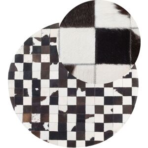 Patchwork Low-Pile Rug. A round rug made of multiple square pieces sewn together. The stylish classic-coloured piece is suitable for any décor whether to complement other interior details or as a standalone item. Made of durable cowhide leather, the rug is soft to walk on and will last for years of daily usage. Details: Product Type: Patchwork Style: Glam General Color: Black, White Material Type: Real Leather Main Material: Cowhide Leather Backing Material: Felt Material Composition: 100% Real Leather Shape: Round Anti-Slip Bottom: No GSM: 2000 g/m2 Pattern: Checked Suitable for Underfloor Heating: No Weaving: Handmade Dimensions: Pile Height: 0.6 cm Width: 140 cm Length: 140 cm Weight: 3 kg Offer Includes: 1 x Rug Key Features: Incredibly Soft, Trendy Design and Colour, Adds a Homely Touch to Any Room, High-Quality Materials, Unique Handmade Piece Assembly Information: Does Not Require Assembly Additional Information: Because of the product's fabric, it may sporadically shed.
