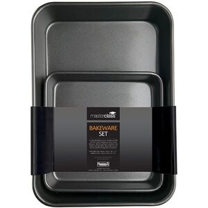 Size of Roasting Pan: 39cm x 28cm (15½ x 11) Size of Square Baking Pan: 23cm (9) Master Class Bakeware from KitchenCraft - a secret manufacturing recipe in its own right, award winning Master Class bakeware from KitchenCraft. Featuring a double Quantum II non-stick coating which is silicone based and therefore PFOA and PTFE free. Most products are designed with rolled edges and sandblasted bases for extra durability and stability. Cook with confidence, Master Class bakeware offers the ultimate in cooking performance and versatility backed by a KitchenCraft 20 Year Guarantee.
