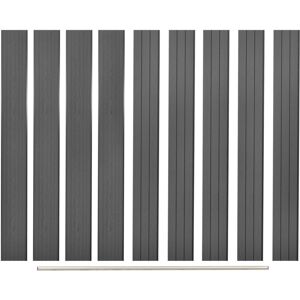 Our fence boards with an ending bar are the replacement for our fence panel sets (SKU 3053225-3053242, 3054431). They can be used as garden barrier or residential fence for privacy and security. These WPC boards have a wood grain print on one side and regular print on the other side, so you can choose the design you like best. Our wood-plastic composite fence boards do not require any additional treatment like oiling or painting. They are very durable and resistant to rot or rust. Thanks to the aluminium top profile, the boards can be tightly attached to each other, which increases their rigidity and strength against impact. Designed with the modular system, the fence boards allow you to expand the fence freely. Delivery includes 9 WPC boards and 1 ending bar. Please note that these fence boards are the replacement for our fence panel sets (SKU 3053225-3053242, 3054431) and we also offer replacement posts (SKU 49076-49077 and 148986-148987). Colour: Grey Material: Wood-plastic