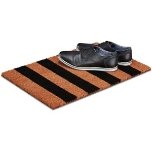 This doormat is charming home decor that will keep your hallway, garage or conservatory clean. The black lines create a chic stripe-pattern on the natural doormat. The coconut fibres have a naturally rough structure, and are a robust, durable and sustainable material. The waterproof door mat is also suitable for outdoor use. Simply shake out or beat the mat to clean it. The rubber underside ensures stability and prevents slipping. Details on the Striped Coir Doormat • Size: HxWxD: 1.5 x 60 x 40 cm • Interchanging stripe pattern • Material: Made of coir and rubber (PVC) • Weight: ca 1.5 kg • Colours: Beige, black Nonslip Coir Mat with Stripe Pattern • For the hallway, basement, garage, conservatory, etc. • Keep dirt outside your home • Entryway matting as chic home decor • Welcome mat for your home Robust Door Mat for Indoors and Outdoors • Quick and easy to clean • Sustainable material • Natural, rustic look • Waterproof coconut fibres • Nonslip with rubber underside Included in
