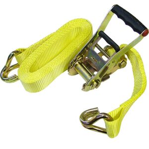 These Faithfull heavy-duty 50mm wide ratchet straps are designed to secure really heavy loads. Manufactured from a 50mm wide triple layer Terylene webbing they are weatherproof, cut and abrasion resistant. The ratchet and J-style fixing hooks ensure that loads are secured quickly and efficiently and provide ease of use. Both the 5 and 8 metre lengths have a breaking strain of 4,000kg/daN and a working load of 2000kg/daN. Pack quantity: 1. Manufactured in accordance to EN12195-2.NOTE: WEIGHT OF CARGO MUST NOT EXCEED THE WORKING LOAD LIMIT.The Faithfull FAITDTRUCK52 has the following specifications:Length: 5mWidth: 50mmBreaking strain: 4,000kg/daN Maximum working load: 2000kg/daNAdditional Information:• Length (m): 5• Tie Down Type: Ratchet• Max. Load (kg): 2000• Breaking Strength (kg): 4000