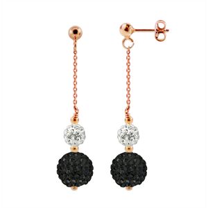 Earrings Pink Gold Pendant Chains - 2 x 2 Balls set with Genuine Crystal White - 6 and 10 mm - strollers system 925 Sterling Silver -Couleur Rose Gold - Our jewellery is made in France and will be delivered in a gift box accompanied by a Certificate of Authenticity and International Warranty