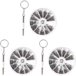 12 kinds of small screws and nuts assortment kit, M1 M1.2 M1.4 M1.6 is available. Total 1800 pcs and you can use them for a long time. Well packed and assorted in a plastic box, no worry about damage or mess. Screw assortment. The box handle is nice and easy to grip right. Perfect for watches, glasses, electronics or anything else that requires small screws. Brand new and high quality. Color: silver The assortment contains the following sizes: Models Quantity: M1.2 nut 150pcs M1.4 nut 150pcs M1 x 3.6 150pcs M1.2 x 3.6 150pcs M1.4 x 2.4 150pcs M1.4 x 2.6 150pcs M1.4 x 2.8 150pcs M1.4 x 3.0 150pcs M1.4 x 4.0 150pcs M1.4 x 4.5 150pcs M1.4 x 6 Rivit main 150pcs M1.6 x 4.5 150pcs Package Included: 3 x Assortment of small screw nuts (600pcs) 3 x Screwdriver for glasses Only the above package content, other products are not included. Note: Light shooting and different displays may cause the color of the item in a little different from the real thing. The measurement allowed error is +/- 1-3