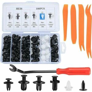 Premium Material The auto mounting clips are made of high quality plastic, durable, low vibration and not easy to break or snap. The body clips were well made and look like the original ones used on the vehicle. . Easy to Use These body retaining clips worked perfectly to hold anything that needed proper fastening and are packed with removal tools. . Wide Applications The car retaining clips are widely used to replace body clips, panel retainers, door panel retainers, door panel retainers, bumper clips, fender clips, hood and splash panel retainers, engine covers and splash guard retainers. . What You Get You will receive 100 pieces car fastener rivet clips in 6 sizes, 1 piece fastener remover and 4 pieces plastic interior panel removal tools. Suitable for most common cars and motorcycles.