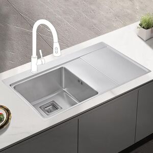 Easy to Clean JASSFERRY kitchen sinks are made of high-quality SUS304 stainless steel with a matt finish. Durable and corrosion-resistant. It can be cleaned with a soft cloth or 3M sponge scouring pad. 1.5 Bowl Design This 1.5 bowl kitchen sink is convenient for you to wash fruits and vegetables separately. The smaller bowl can also provide space to dry dishes. Right Drainboard This sink is assembled with the drainboard to the right. A large draining area will come in very handy not only when placing dishes to dry but also as an extra place for cutting vegetables or fruits Deep Bowl This sinks features a deep bowl, which prevents splashing and fits your biggest pots and stacks of dishes