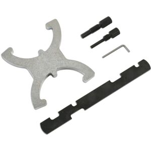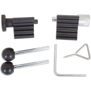 The Renault DCi 1.6, 2.0 and 2.3L engines utilise a chain drive between the crankshaft and exhaust camshaft - the inlet camshaft is gear driven from the exhaust camshaft. These engines employ a split camshaft gear on the inlet cam which has its two halves radially sprung to quieten the gear drive and remove any backlash. To set the timing correctly the inlet camshaft gear must first be removed from the engine and the two gear halves aligned using an inlet camshaft alignment tool. This tool kit includes a vice mounted inlet gear alignment tool for this purpose. Timing tool kit for Renault 1.6 and 2.0L DCI chain drive diesel engines fitted to the Megane, Vel Satis, Espace, Scenic, Trafic, Laguna and Koleos. Engine codes M9R XXX, M9T XXX and R9M XXX . These engines are also fitted to the Nissan Qashqai, Vauxhall/Opel Vivaro as well as Mercedes C-Class and Vito (626.951 and 622.951 engine codes). Two crankshaft locking pins are now included to cover the 1.6 DCi (comp. G), 2.0 and 2.3 DCi