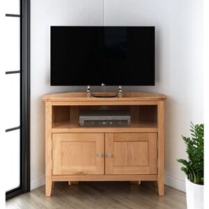 This sturdy, solid oak framed television cabinet is designed to fit snugly into any 90-degree corner and boasts a large cupboard with spacious space. Designed for style and practicality, this piece is ideal for lounges, bedrooms and living rooms. The large open shelf provides ample space for consoles, DVD players and digital boxes, with the cable hole to the rear of the piece providing an organised way to reduce the messy, tangled wires which often become problematic in this area. Below this shelf, the cabinet boasts a generous cupboard, with two external doors, ideal for storing games, paperwork, instruction manuals and controllers. The frame is crafted from solid oak, for a sturdy, reliable cabinet which will be in your home for years. The piece is coated in a natural lacquer which works to both protect the wood, making the cabinet even more robust, as well as enhancing and brightening the natural patterns and colours of the light oak. Features Fits snugly into any 90-degree corner.