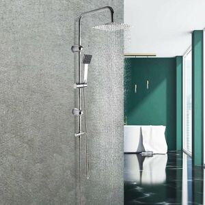 Shower Mixer Chrome Head Bathroom Square Valve Twin Bath Kit Set Product Features: [High quality]: The shower column is made of 304 stainless steel and ABS plastic. Chrome coating finished surface, easy to clean, not easy to change color and corrosion, resistant to daily scratches [Adjustable bracket]:The height of the shower rail kits can be adjusted by two fixed brackets, and the height cannot be adjusted after installation. If you have old holes, you don't need to drill any holes [Ultal-thin overhead shower]: 8 inch ultal-thin stainless steel top shower spray with a wider shower area, will not accumulate water and silicone nozzles is easy to clean. It can also be titled 15 degree in any direction(front/back left/right) [3-functions handheld shower]: Rain shower + eco spray + massage jet, the shower head holders of the shower head can be adjusted up and down [Longer connection hoses]: Anti-kink water inlet pipe) and 150CM(hand shower hose) long, allowing the shower hose to be