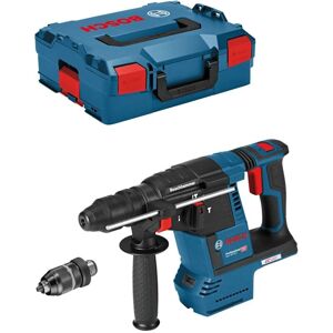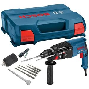Features of the Bosch GBH-2-26DRE SDS Drill: Improved performance for a fast drilling rate and high chiselling removal rate Reliable and robust with long lifetime due to high-quality components Wide range of applications for drilling, hammer drilling and chiselling Other features Ball grommet for preventing cable breaks Rotating brush plate for equal power in forward and reverse rotation Overload clutch to protect the user and the machine Forward/reverse rotation for dislodging jammed drill bits Continuously variable speed control for clean drilling starts Locking button for continuous and fatigue-free work Right-hand/left-hand rotation Bosch GBH-2-26DRE SDS Drill comes with: Keyless Chuck and Adaptor. Bosch Hard Carry Case.