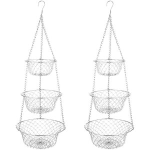 ORGANIZATION - Large iron basket can be used as kitchen organizer, bathroom organizer and hanging planter. Save space. FUNCTIONALITY - The sturdy hanging fruit basket not only organizes all kinds of fruits, but also allows even airflow to ripen fruits and keep your fruits and vegetables fresh. Each layer is detachable. MATERIALS - The basket is handmade using high quality iron. It is foldable, lightweight and rust resistant. EASY ASSEMBLY - 3-tier metal baskets, each layer can be assembled freely. No tools required for basket assembly. Color: Silver Material: Iron Size: Length 76cm, basket diameter is 27cm / 22cm / 18cm Package Contents: 2 x Hanging Baskets Only the above package content, other products are not included. Note: Light reflection and different displays may cause the color of the item in a little different from the real thing. The measurement allowed error is +/- 1-3 cm.