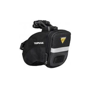 Aero shaped wedge pack with easy-to-use quick release or strap mounting system. 1000 Denier Teflon coated fabric 3M Scotchlite reflective strip Expanding design M L Built-in pump holder M L Tail light strap Micro: 6.6x14x8.1cm 0.41L 87g Small: 7.1x17.8x10.9cm 0.66L 105g Medium: 9.6x20.3x12.7cm 0.98-1.31L 135g Large: 11.4x21.6x14cm 1.48-1.97L 176g