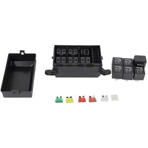About this item: Large Capacity Relay Holder - This relay box is 6 slots relay panel design, which includes 5 slots for 5 pin style relays, 1 slot for RTT7121 4 pin relay. ATC/ATO Fuse Relay Box - This fuse block with relay is also 6 slots relay holder design for ATC/ATO fuses, which makes the fuse relay become when use. Suitable Terminals - This 12v relay box also come with terminals for relays and fuses, which enables you to install and use the fuse and relay box at once. Top & Bottom Cover - This relay box 12v automotive come with a top cover and a bottom cover, which makes the relay fuse box become a waterproof relay box. Fuse and Relay Box: Fuse Type: ATC & ATO Fuse Relay Type: Relay & RTT7121 Relay Number of Fuse Slots: 6 Number of Relay Slots: 5 x relay, 1 x RTT7121 Style Material: plastic colour: black Package Contents: 1 x Fuse Relay Block with Top & Bottom Cover 6 x Relays (5 x 5 Pin relay, 1 x RTT7121 Style) 16 x ATC/ATO Fuses (4 x 10A, 4 x 20A, 4 x 25A, 4 x 30A) 41 x