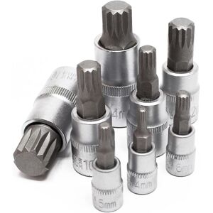 We offer you a set of XZN sockets. The set consists of 8 multi-tooth sockets in sizes M4, M5, M6, M8, M10, M12, M14 and M16 with a steel bit holder and a slotted base. The set consists of: M4, M5, M6 sockets with 6.3 mm (1/4") drive, M8, M10, M12 sockets with 10 mm (3/8") drive, M14, M16 sockets with 12.5 mm (1/2") drive.