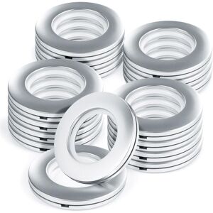 Easy to install: just clip them on, no tools needed. For sheer drapery fabrics. Size: Inner diameter: 40mm, Outer diameter: 74mm. These grommets fit curtain rods up to 35mm in diameter. Material: High quality ABS plastic, no rust, fine workmanship, no fading. Feature: Built-in nanoscale silent ring, to slide smoothly on the curtain rod and protect the rod with low noise. Package included: 20 sets of 40mm inner diameter curtain grommets.
