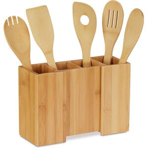 This practical bamboo cutlery holder is adjustable in size for more storage space. For a great cooking experience, it comes with a set of 5 kitchen utensils. The set includes everything you need to cook a delicious meal: a classic stirring spoon, slotted ladle for sauces and risotto, a spatula for frying, plus a cooking and salad spoon. This sturdy support for cutlery is a great kitchen accessory and organiser. Have your favourite utensils at your fingertips! Wooden Utensils Support Details - Size caddy H x W x D: app. 17 x 15-25 x 10 cm - Inner compartments: H x W x D: app. 15 x 5.5 x 6.5 cm - Outer compartment H x W x D: 16 x 5 x 8.5 cm - Size per spoon H x W x D app. 30 x 6 x 0.8 cm - Weight box: app. 880 g - Total weight: app. 1 kg - Material: Bamboo - Colour: Natural Bamboo Kitchen Spoons Set with Box - Adjustable cutlery caddy with set of 5 kitchen utensils - Set includes a total of 6 pieces - Includes stirring spoon, spatula, slotted ladle, cooking & salad spoon - With 2 to 4