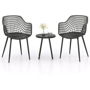 This bistro set features PP seat and tabletop, which can withstand extended use and remain beauty. The ergonomic design of the chairs with contoured seats and breathable backrests assures comfort during long periods of relaxation, while the uniquely designed concave coffee table securely holds your beverages and essentials. Moreover, the sturdy metal structure and adjustable footpads offer strong support and high safety. Make this versatile set part of your living space and transform your environment into a sanctuary of tranquility. George Oliver