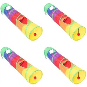 Made of ultra-strong, tear-resistant polyester wrapped around a high-strength memory steel skeleton with protective ends (for safety), not only is it protected from scratches, but it stays strong while your pets play. The can see the appearance of a rainbow and a spacious tunnel, built-in crackle crinkle paper and a soft ball toy. Also two peek-a-boo holes. Popular tube gives your kitten more ways to have fun. It provides hours of exercise and self-entertainment. With a provided elastic band, our tunnels fold in seconds for easy transport and storage. Cat tunnel can therefore freely inside and outside. The tunnel offers your pets more possibilities of than other dark colored tunnels and more interactive fun than tents, cubes, scratching posts, feathers and mice. Small dogs, rabbits and ferrets are also interested in it. Great gift for all lovers and your pet. Color: color Material: Polyester Size: 115 * 25cm Package Contents: 4 * Cat Tunnel Pet Tube Only the above package content,