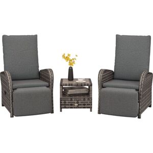 Do those lazy afternoons in the sun the right way choose this rattan patio furniture set from Outsunny. Formed of three pieces a garden table and two chairs; enjoy outdoors with company. Powder coated aluminium frame for a strong structure, wrapped in stylish plastic rattan - double the durability. Both chairs come with seat and back cushions for comfort. OUTSUNNY 3 PCS Aluminium Rattan Bistro Set with Soft Cushions & Glass Top in Grey