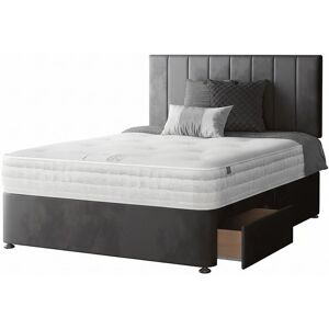 We are introducing our stunning 24-inch Stripped Headboard and Divan Base to transform your bedroom into a haven of comfort and style. Crafted with meticulous attention to detail, this bed combines luxury and practicality to give you the best of both worlds. Indulge in the soft, sumptuous embrace of our Divan Bed, available in plush velvet materials. The velvet adds a touch of elegance and warmth to your space, making every night's sleep a truly luxurious experience. Divan Bed features 2 drawers option on the left or right side for Single & 2 drawers at the foot end, and 4 drawers for Small Double, Double, King size, and Super King size, providing ample storage for your bedding, pillows, and more. A divan bed with no drawer options is also available. The 24-inch headboard on struts serves as a striking focal point in your bedroom. Its elegant design offers comfort for sitting up in bed and adds a touch of sophistication to your decor. Relax and unwind in style. Crafted with exceptional attention to detail, our beds are manufactured in England to exceed the stringent quality and safety standards set by the UK ensuring stability and support for years to come, providing you with nights of uninterrupted, restful sleep. Upgrade your bedroom with the perfect blend of luxury and functionality. Our Divan Bed with a 24-inch headboard and convenient foot-end drawers is the ultimate choice for those who appreciate comfort and style. Fairmont Park Size: Double (4'6), Colour: Grey, Storage Type: No Drawer