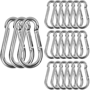 【Excellent Quality】Heavy duty carabiner is made of galvanized iron, durable, corrosion resistant, very suitable for home fixing or hanging 【Carabiner Chain】Stainless steel spring carabiner adopts spring gate design. The carabiner keychain allows quick connection/disconnection of ropes, chains and straps. 【Size】M5 Galvanized Lever Action Snap Hook, Length: 1.96 inches (50 mm); Thickness: 0.19 inches (5 mm); Maximum Opening Width: 0.27 inches (7 mm). 【DIY Home and Outdoors】Not suitable for climbing; Excellent spring carabiner used for hanging rope, ropes, key, water bottles, key rings, hanging lanterns, dog ropes, pulleys, rings, hardware, DIY accessories and other tools. Various uses such as home, boat, backpack, handbag, etc. Excellent accessories for daily life, camping, hiking, backpacking, fishing or other outdoor and fitness activities. 【Heavy Duty Carabiner 220 lb】20 well-made spring snap hooks, 100kg/220lb capacity load, to meet your different needs. Made of galvanized iron,