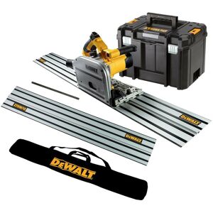 Dewalt DWS520KT Plunge Saw and Guide Rail, complete with 48 tooth saw blade, 2 x 1.5m guide rail with connectors, carry bag and carrying case. Dewalt offer a simple and effective solution to a wide range of applications including laminate cutting and door trimming. Extremely high levels of accuracy, finish and durability make the DWS520KT a desireable product. Features of the DWS520KT Dewalt DWS520KT plunge saw from Dewalt gives outstanding levels of accuracy and finish, as well as extreme durability The DWS520KT is designed in conjunction with guide rails that are easy to set up and use, the system offers a simple and effective solution for a range of applications, particularly with laminate cutting The Dewalt DWS520KT has a flat outside guard so can be used for door trimming Anti kickback function stops the saw from moving backwards along the rail Includes 48 tooth precision saw blade Heavy duty TSTAK carrying case 2 x 1.5m guide rails Bag to hold both rails Rail Connectors