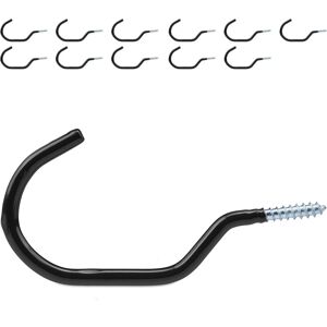 With these bicycle wall hooks in a set of 12, you can keep your workshop, cellar and garage tidy. The bicycle wall holder allows you to hang up your beloved bike as well as tools, gardening equipment and store things more clearly within easy reach. Mount the robust screw-on hooks on the wall or ceiling as required. The black PVC coating always ensures your bike won't slip off the hanger and prevents unsightly scratches. Bicycle Hook Set of 12 in Detail - Overall dimensions H x W x D: approx. 7 x 0.7 x 14.5 cm - Load capacity per hook: approx. 25 kg - Weight: approx. 50 g each - Material: Steel, PVC - Colour: Black, silver Versatile Screw Hooks for Wall or Ceiling - Robust bicycle hangers in a practical set of 12 - For more order in the garage, cellar or workshop - Hooks can be screwed to the ceiling or wall - For hanging up bicycles, garden tools and equipment - Non-slip PVC coating prevents scratches Scope of Delivery - 12x bicycle wall holder - Mounting material and decorative items