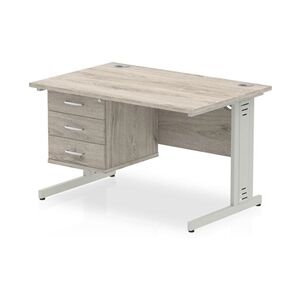 Impulse 1200x800 Desk Grey Oak White Leg + Fixed Pedestal