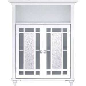 Upgrade your home storage while adding classic decor with the Elegant Home Fashions Windsor Wooden Floor Cabinet with Glass Mosaic Doors. This decorative cabinet features a timeless white finish with silver glass mosaic doors, beveled trim, and chrome-finished knobs for a beautiful addition to your space. The included adjustable shelf makes this cabinet functional and customisable to suit your storage needs. Constructed from durable engineered wood, this storage unit is built to provide you with long-lasting organization. Easy, step-by-step instructions and all of the hardware needed for installation are included for quick assembly. Purchase this stylish floor cabinet alone or with other items from the Windsor collection for a cohesive, updated look. The Elegant Home Fashions Windsor Wooden Floor Cabinet with Glass Mosaic Doors provides accessible storage without taking up too much space in your living area or bathroom. An affordable extravagance. Elegant Home Fashions products have