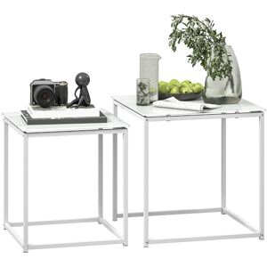 Feature: A small table, a larger: easy to together for storage Steel frames with stump feet for a balanced structure Tempered glass top - stronger then normal glass for safety. A sleek, polished look for style Side table suitable for use in living room/lounge, bedroom, hallway, reception and office Maximum load 30kg, assembly required Specification: Colour: White Material: Steel, Tempered Glass Large Table Size: 50L x 50W x 52Hcm Small Table Size: 42L x 42W x 42Hcm Weight Capacity: 30kg(Single) Item Label: 839-245V00WT 2 x Side Table 1 x Manual