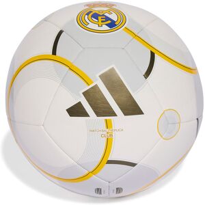 Proudly display your football fandom through every kickabout.This Real Madrid Club ball from adidas displays the teams famous home colours on its durable, machine-stitched cover.The butyl bladder provides excellent air retention so you can keep playing for longer.Show your support with this durable ball in Real Madrids famous colours.-100% thermoplastic polyurethane (recycled).-Machine-stitched construction.-Butyl bladder.-Real Madrid printed crest.-Requires inflation.