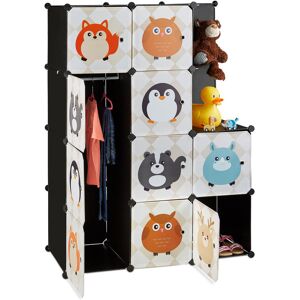 This large children’s shelf with cute animal prints provides order for your wardrobe. The kid’s wardrobe features 7 spacious compartments and a tall compartment with 2 open shelves. The doors of this black dresser portray various animals such as owl, fox, skunk, rhino, penguin and stag. Girls and boys alike will rejoice at this happy scene. The standing shelf is based on a plug-in system and can be assembled after your own fashion. Turn the wardrobe into a sideboard for toys and books. There are no limits to your imagination here. Tip: When assembling the shelving system, please make sure to do so at room temperature. This will ensure that the connecting pieces will stay flexible enough. Children’s Plug-In Shelf Details - Size: H x W x D: app. 145 x 110.5 x 46.5 cm - Clothes rail compartment: H x W x D: app. 106.5 x 35 x 45 cm - Small compartments: H x W x D each: app. 35 x 35 x 45 cm - Size square shelf H x W x D: app. 35 x 35 x 45 cm - Weight: app. 9.2 kg - Maximum capacity: 8 kg