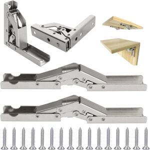 Quality Materials The 90 degree folding shelf hinges are made of cold rolled steel, strong and durable, and double plated with copper and nickel, rust-proof and not easy to deform, more corrosion-resistant and longer service life. Help you easily organize your furniture, save space and keep order. 90 Degree/180 Degree Hinges The shelf hinges are designed for 90 degree and 180 degree use, suitable for most types of desks and walls. They are ideal for kitchen cabinet door fittings, cupboards, TV cabinets, bookcases, wine cabinets and many more. Easy to Use The cabinet hinges can be installed as half hinges or full hinges without having to drill holes. They are easy to install, remove and replace. This saves time and labor. (Please start the installation work after determining the installation method and marking the installation position). High Elasticity and Support Stainless steel folding hinges are designed with springs inside with high elasticity for slow and gentle closing action,