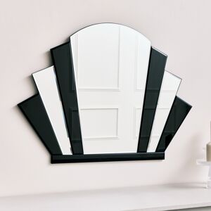 This Black Glass Art Deco Arch Fan Wall Mirror 80cm x 60cm is a a beautiful vintage inspired piece of wall decor ideal for fans of luxurious looking mirrors and art deco design. Made of wood resin and glass this mirror has an arched fan design with Black glass panel detailing. Ideal for fans of vintage style this mirror can easily blend into a wide variety of interiors. This striking wall mirror is perfect for placing above a fireplace dressing table or console table. This mirror is also available in Grey. This mirror can be wall mounted vertically via two hooks either side on the back. Part of a wide selection of wall mirrors available in a variety of sizes design and styles. Want to see more items like this Browse our full Mirrors collection for more design options. Colour: Black Material(s): Wood Metal Glass 80cm x 60cm x 1.5cm (width x height x depth) Fully assembled Can be wall mounted vertical