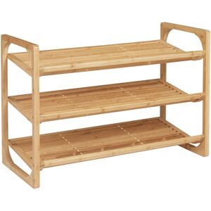 Shoes can now be kept out the way in beautiful style: look to this HOMCOM bamboo shoe rack. Three shelves - each can hold three shoe pairs: that's nine in total - perfect for family use. The bamboo structure is strong and sturdy, left natural so you can have it how it is, or customise to your own liking. Slatted shelves help with aeration to keep things as fresh as possible. HOMCOM 3-Tier Bamboo Shoe Rack Storage Organiser with Slatted Shelves in Natural