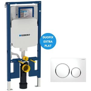 Geberit Duofix Set Extra-Flat Support Frame 114 cm UP720 + Sigma 20 Two-Touch Flush Plate, White/Chrome (111.796.00.1-C) Geberit Duofix Extra-Flat Support Frame 114 cm UP720, 8 cm Sigma Concealed Cistern (111.796.00.1) Space-saving, extra-flat frame 114 cm, suitable for wall-hung WCs up to 70 cm projection Frame compatible with WC bowls with small support surface and pressure-resistant wall cladding Galvanised, infinitely adjustable, non-slip support feet Depth of foot plates suitable for installation on UW 50 profiles and Geberit Duofix system rails Connecting bend for multiple depth positions; tool-free mounting Connecting bend flush with front for vertical installation; extended bend for floor connection Bend fastening sound-insulated Built-in cistern with front actuation, fully insulated against condensation Immediate post-flushing possible from factory setting Tool-free installation and maintenance of concealed cistern Water supply from top left Access panel housing protects