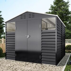 Maximize your outdoor storage with this versatile 10.8x6.8 FT garden metal shed—designed to keep your space tidy and your essentials within reach! Featuring a 6.8x2.2 FT dedicated open log store, it holds plenty of firewood, long-handled tools, or garden stakes—no need for a separate log rack! The main compartment offers ample room for gardening tools, lawn mowers, outdoor furniture, or equipment, eliminating clutter from your backyard or patio. Crafted from heavy-duty steel (0.25mm color steel plate + 0.6mm galvanized plate), this black shed is weatherproof, protecting your belongings from rain, sun, and dust. Four ventilation shutters ensure fresh air circulates, eliminating musty odors and keeping the interior dry. With double doors for easy loading/unloading of large items and a lockable design (U-lock sold separately) for added security, this shed is the perfect blend of functionality and durability. Upgrade your outdoor space today—no more scattered tools or messy firewood! Features 6.8x2.2 FT Log Storage: A dedicated open area for firewood or long garden items—no separate log rack needed. 8.6x6.8 FT Spacious Capacity: Main compartment fits gardening tools, furniture, or equipment with ease. Ventilation Shutters: Four shutters keep air fresh and eliminate odors, preventing dampness. Durable Steel Build: Heavy-duty steel resists rain, sun, and dust—built to last. Double Doors & Lockable: Wide doors for easy access; lockable (U-lock not included) for security. Living and Home 8x6 FT Garden Metal Storage Shed with 6.8x2.2 FT Log Store, Double Doors Lockable Weatherproof Outdoor Shed for Garden Tools in Black