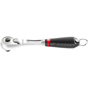 This Facom RL.161 1/4-inch Sealed Pear Head Ratchet features a dust proof maintenance free mechanism. It has a 72 teeth mechanism for 5° increment, and the drive direction switch allows easy reversal, even with gloved or greasy hands. The palm control system allows the operator to press down on the head avoiding the risk of accidental reverse. This Facom ratchet has an ergonomic comfort grip handle design, an ultra-compact head, and is resistant to workshop chemicals or solvents. Specifications: Weight: .08kg. Overall Length: 121mm.